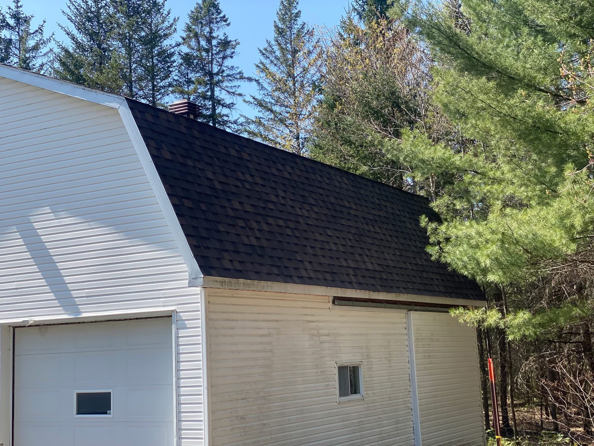 Barn Shingles Roof Garage. Roof Replacement with High-Quality Shingles Complete roof replacement with premium shingles. Description: Shingle roof replacement services in Ottawa, using high-quality materials for durability.