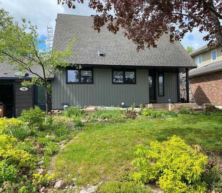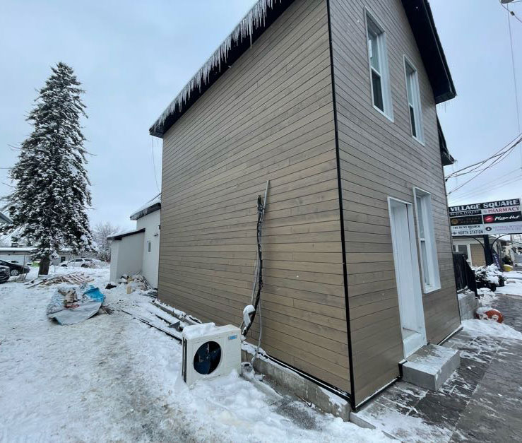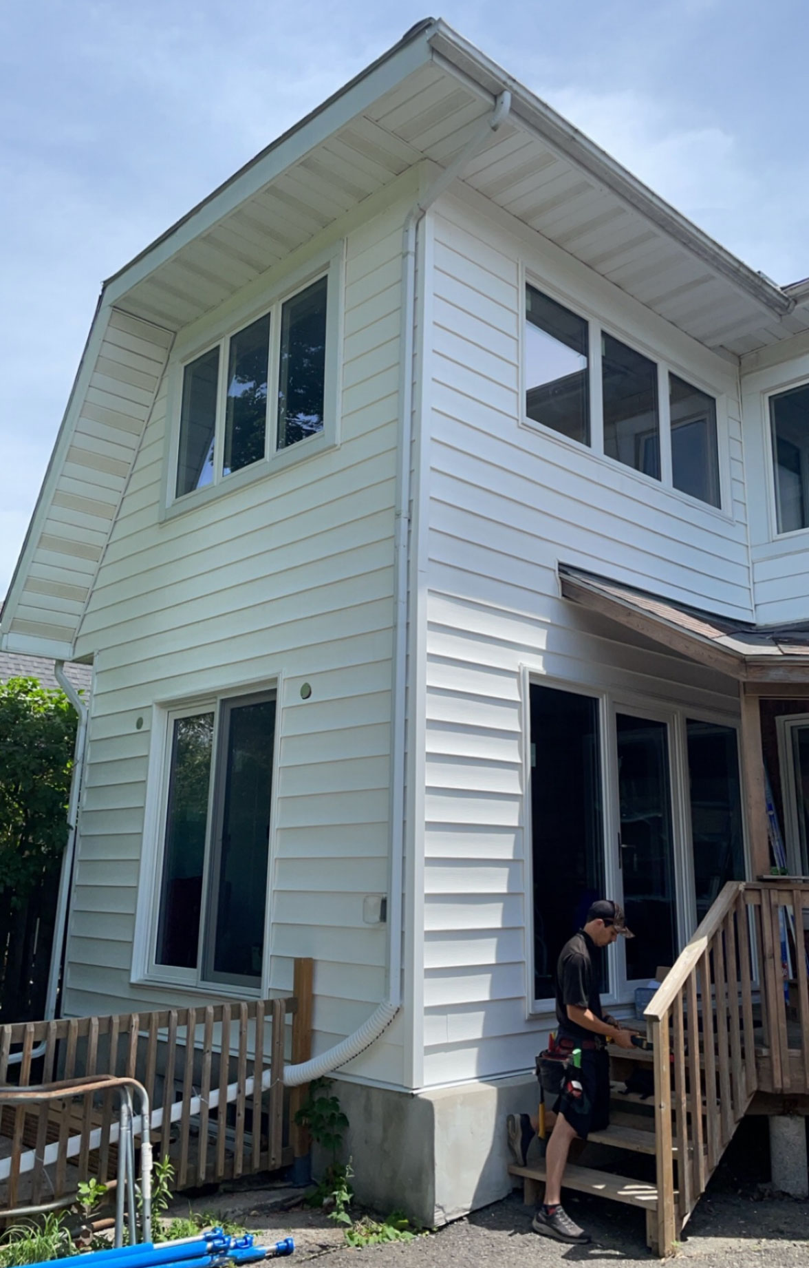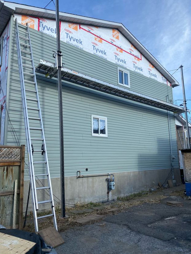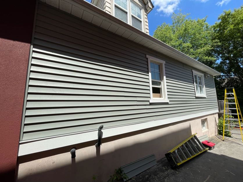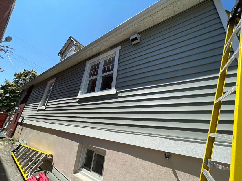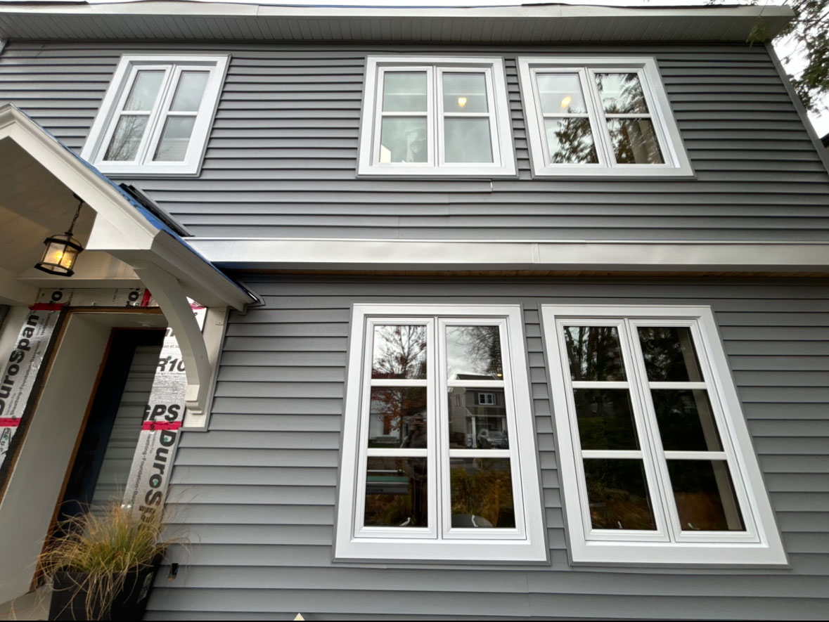 New vinyl siding installation on a house in Ottawa. Description: High-quality vinyl siding with custom color options, installed by Arpine Development for durability and energy efficiency.